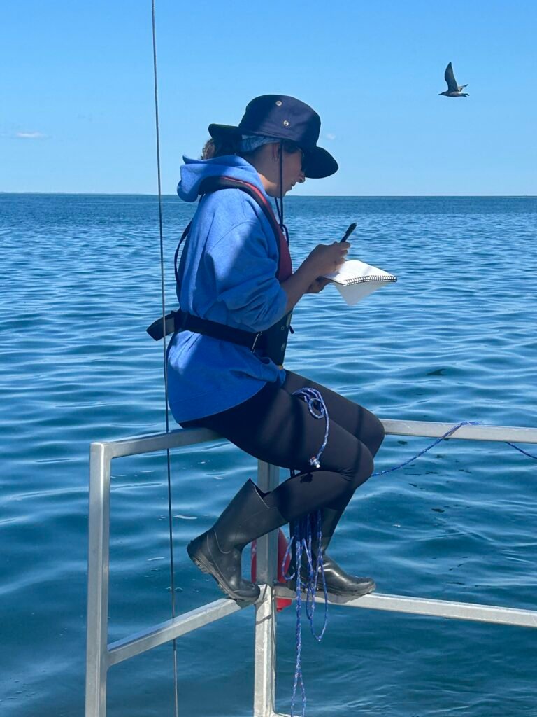 • Stand on the deck to point and squeal as the research team announces incoming and visible shark activity. Lean over the side of the boat to see them up close, and take many, many photos.